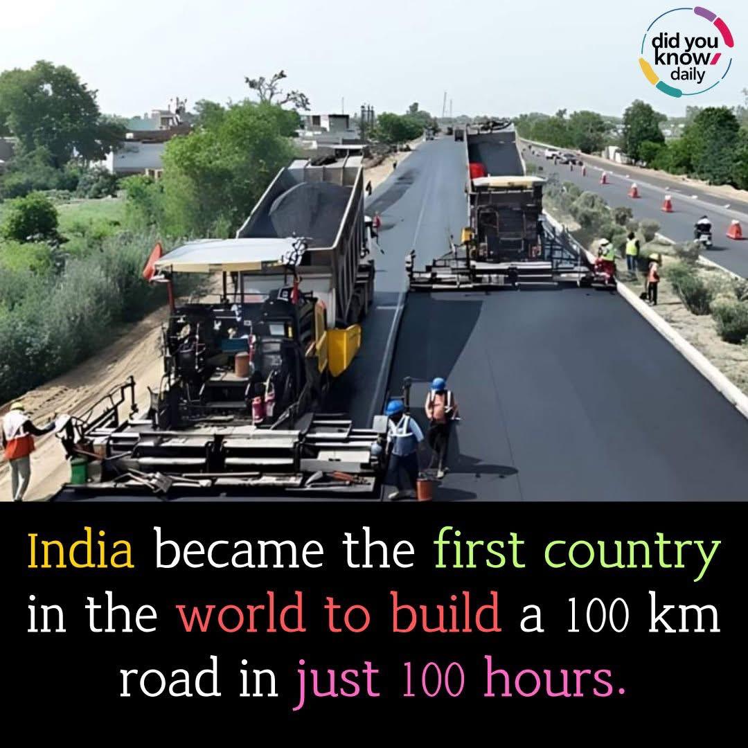 India has set a new record by becoming the first country in the world to build a 100 km road in just 100 hours. The work was finished in a little over four days, which is far faster than usual. People across the nation felt proud as engineers, workers, and officials announced this fast and successful job.