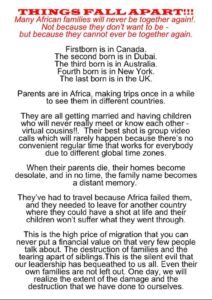 THE DESTRUCTION OF THE AFRICAN FAMILY BY AFRICANS.